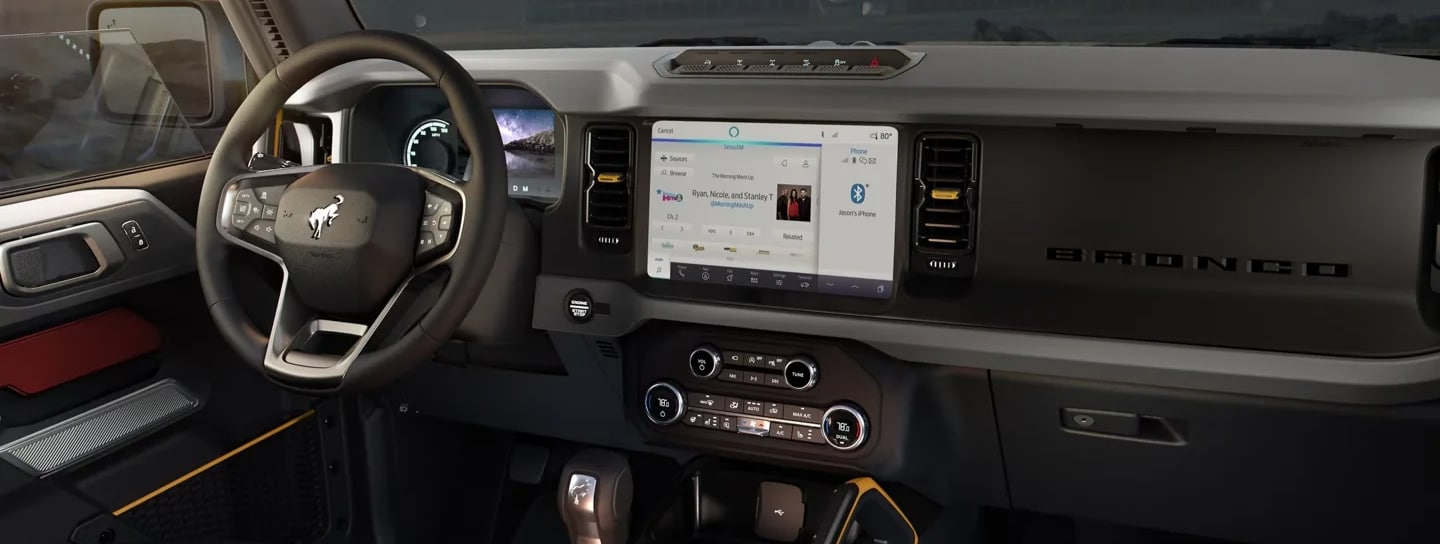 Paying homage to the original Bronco, the cloth seats and retro white wheels will give you a feel of the past and the modern comforts of today's cars.