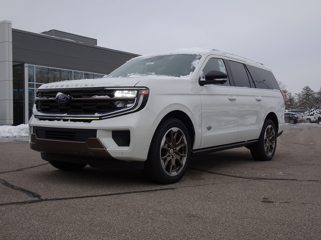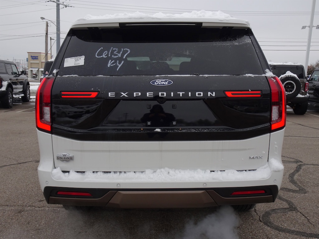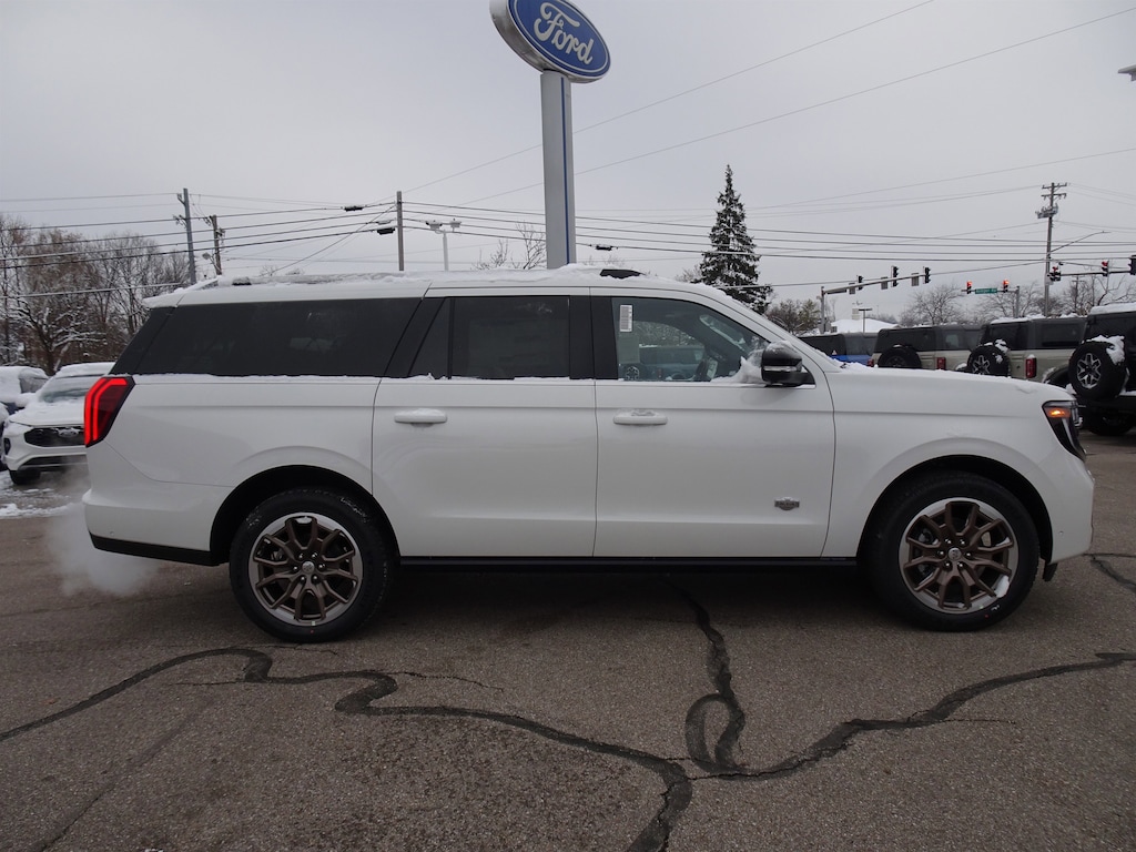 White Metallic 2025 Ford Expedition Max King Ranch 4WD 10-Speed Automatic EcoBoost 3.5L V6 GTDi DOHC 24V Twin Turbocharged Expedition Max King Ranch, 4D Sport Utility, EcoBoost 3.5L V6 GTDi DOHC 24V Twin Turbocharged, 10-Speed Automatic, 4WD, Mesa Leather.