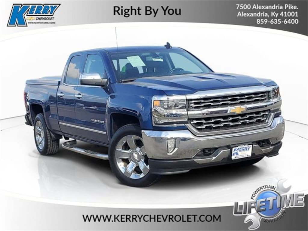 Home of the Lifetime Powertrain Protection! Proudly Serving: Cincinnati, Dayton, Lexington, Louisville, Hamilton, Mason, Sharonville, Beavercreek, Springdale, West Chester, Monroe, Fairfield, Kenwood, Newport, Covington, Fort Mitchell, Fort Thomas, Fort Wright, Independence, Florence, Union, Alexandria, Butler, Falmouth, Dry Ridge, and all of greater Cincinnati, Ohio, Indiana, and Northern Kentucky. 2017 Chevrolet Silverado 1500 LTZ Deep Ocean Blue Metallic BLUETOOTH, HEATED SEATS, BACK UP CAMERA, LEATHER, FOUR WHEEL DRIVE 4WD, CLEAN VEHICLE HISTORY...NO ACCIDENTS, 6-Speed Automatic Electronic with Overdrive, 4WD, Jet Black Leather. Clean CARFAX. Awards: