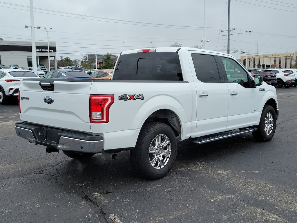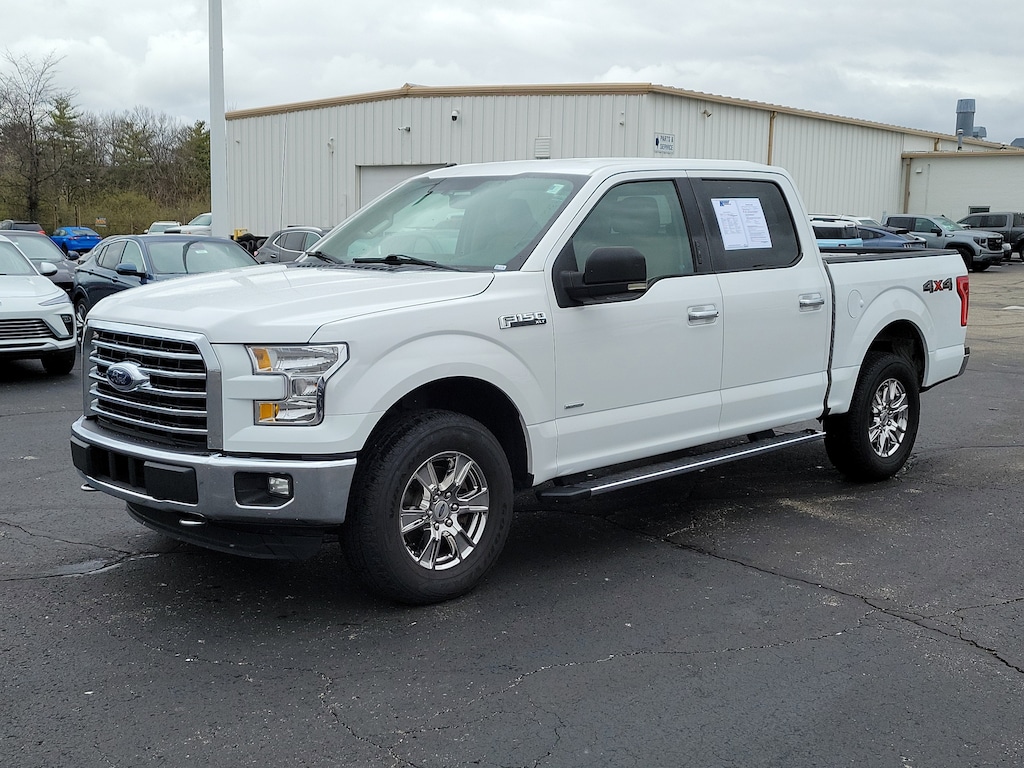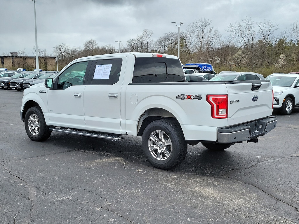 CARFAX One-Owner. Oxford White 2016 Ford F-150 XLT 4WD 6-Speed Automatic Electronic 2.7L V6 EcoBoost F-150 XLT, 4D SuperCrew, 2.7L V6 EcoBoost, 6-Speed Automatic Electronic, 4WD, Oxford White, Medium Light Camel w/Cloth 40/Console/40 Front Seats or Cloth 40/Console/40 Front Seats, 10-Way Power Driver's & Passenger Seats, 110V/400W Outlet, 4-Wheel Disc Brakes, 6 Speakers, 8-Way Power Driver's Seat, ABS brakes, Air Conditioning, AM/FM radio, Auxiliary Transmission Oil Cooler, Brake assist, CD player, Class IV Trailer Hitch Receiver, Cloth 40/20/40 Front Seat, Delay-off headlights, Dual front impact airbags, Dual front side impact airbags, Electronic Locking w/3.55 Axle Ratio, Electronic Stability Control, Equipment Group 302A Luxury, Front anti-roll bar, Front fog lights, Front wheel independent suspension, Fully automatic headlights, GVWR: 6,500 lbs Payload Package, Heated Front Seats, Leather-Wrapped Steering Wheel, LED Box Lighting, Low tire pressure warning, Occupant sensing airbag, Overhead airbag, Panic alarm, Power Glass Heated Sideview Mirrors, Power windows, Power-Adjustable Pedals, Power-Sliding Rear Window, Pro Trailer Backup Assist, Radio: Single-CD w/SiriusXM Satellite, Rear Under-Seat Storage, Rear View Camera w/Dynamic Hitch Assist, Rear Window Defroster, Remote keyless entry, Remote Start System, Reverse Sensing System, Speed-sensing steering, Steering wheel mounted audio controls, SYNC 3, Traction control, Trailer Tow Package, Upgraded Front Stabilizer Bar, Wheels: 18" Chrome-Like PVD, XLT Chrome Appearance Package.