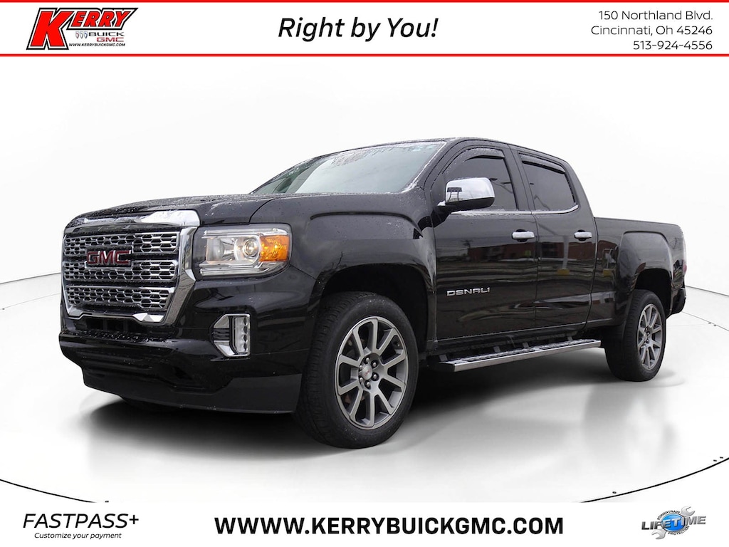 Clean CARFAX. Onyx Black 2022 GMC Canyon Denali 4WD 8-Speed Automatic V6 Canyon Denali, 4D Crew Cab, V6, 8-Speed Automatic, 4WD, Onyx Black, Jet Black Leather, 5" Rectangular Chrome Assist Steps, Black Spray-On Bedliner w/GMC Logo, Bose Premium 7-Speaker Audio System Feature, Delay-off headlights, Driver Alert Package, Electronic Stability Control, Exterior Parking Camera Rear, Forward Collision Alert, Front fog lights, Fully automatic headlights, Heated Steering Wheel, Hitch Guidance, Lane Departure Warning System, Navigation System, Panic alarm, Polished Exhaust Tip, Preferred Equipment Group 4SD, Speed control, Speed-sensing steering, Tow/Haul Mode, Traction control, Trailering Package, Ultrasonic Rear Parking Assist, Wheels: 20" x 8.5" Diamond Cut Machined Aluminum.